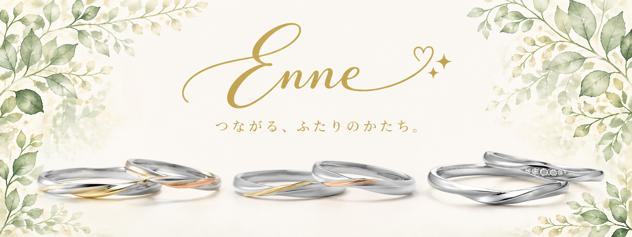 ENNE(エンネ)は、「∞=永遠」と「縁=つながり」をテーマにしたブライダルリングブランドです。やわらかく流れる曲線は、ふたりの時間や想いが自然に重なり合う姿を表現しています。指元に心地よくなじむフォルムと、シンプルで飽きのこない美しさは、日常の中で長く寄り添うためのかたち。すべて国内工房で丁寧に仕上げられ、確かな品質と安心感を兼ね備えています。特別な瞬間だけでなく、何気ない毎日にもそっと寄り添い、ふたりの未来を静かに見守り続ける結婚指輪です。